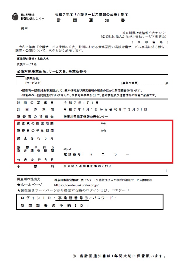 - 計画通知書を対象事業所にFAXにて再発行します。公表センターまでご連絡ください。